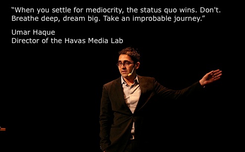 When you settle for mediocrity, the status quo wins. Don’t. Breathe deep, dream big. Take an improbable journey. Umar Haque, Director of the Havas Media Lab